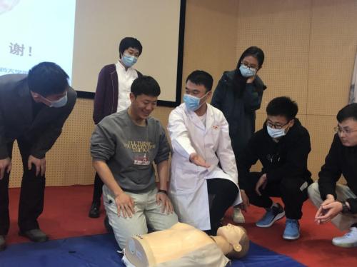 活动中,刘毅副主任医师和陈威力主治医师进行了心肺复苏和海姆立克急救法的讲解,陈威立和马伟金进行现场示范,讲解和示范后老师们踊跃的上台参与活动,鲍家敏护士长、阎妍护士长再次为老师们示范每一个动作并现场指导,现场气氛活跃。通过此次活动,帮助老师们树立安全避险意识,掌握了常见突发事件和伤害的应急处置方法,提高了急救能力,保障了学生们的生命安全。